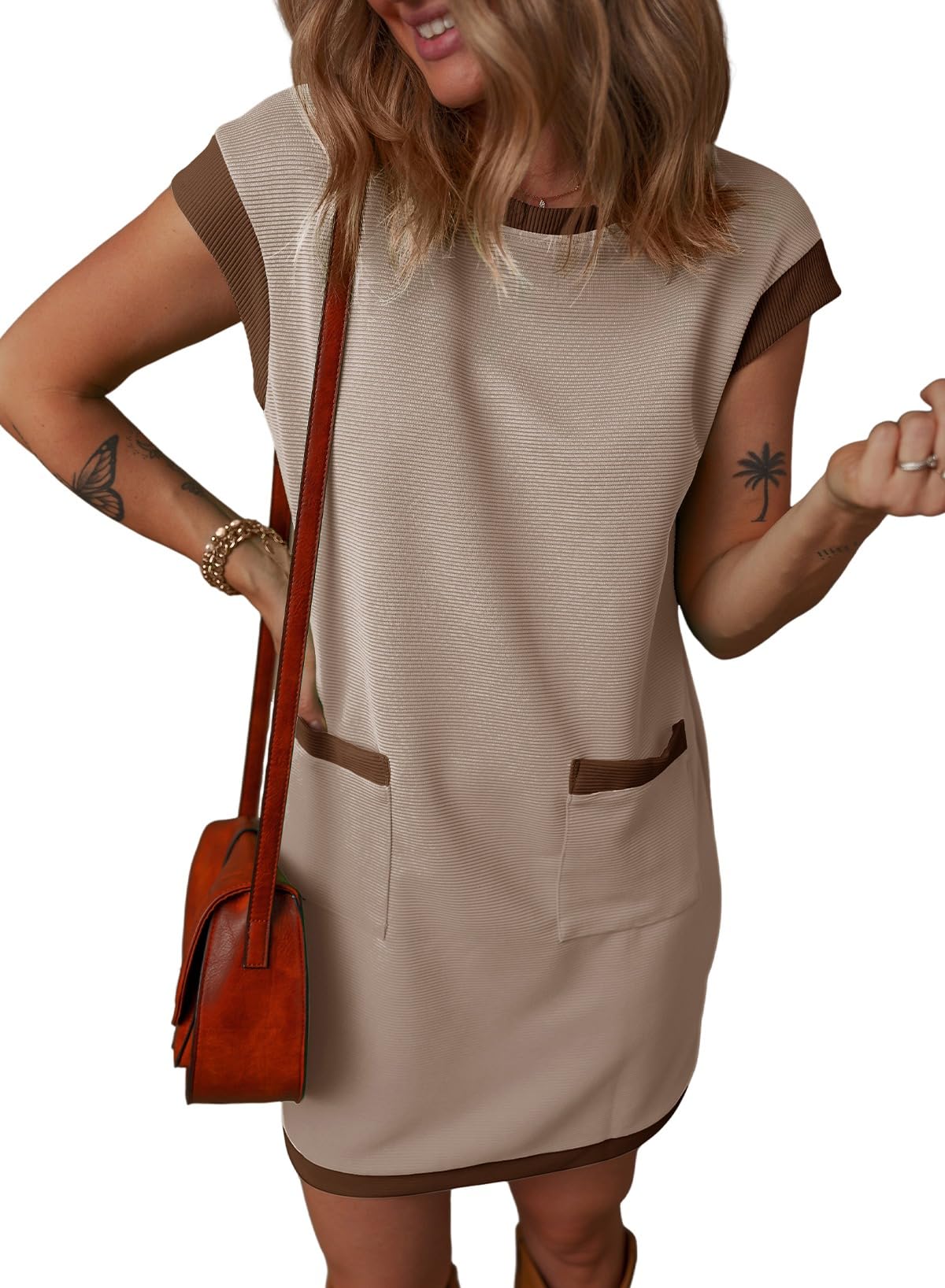 😍 VERKAUF am letzten Tag 50% OFF 💥 2025 Neue Frauen Casual Cap Sleeve Color Block Shift Tshirt Kleid mit Taschen(2 kostenloser Versand kaufen)