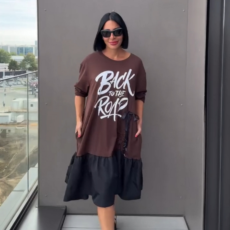 Lockeres Kleid mit Rundhalsausschnitt, Alphabet und Schleife