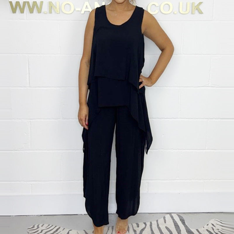 Lässiges, ärmelloses, lockeres Oberteil und Hosenanzug für Frauen mit Übergröße