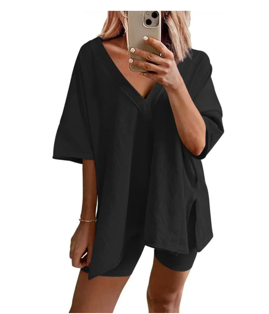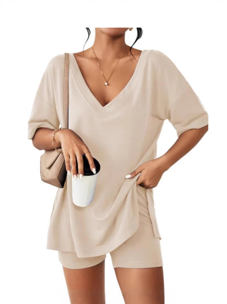 ✨Zweiteiliges Set aus T-Shirts mit V-Ausschnitt und lässigen Shorts für Frauen🎉