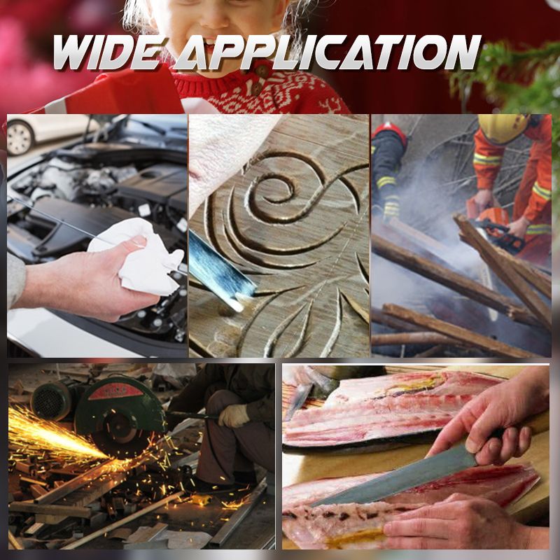 Weit verbreitet in den Bereichen Fleischschneiden, Gartenarbeit, Glasverarbeitung, Metallschneiden, Katastrophenhilfe und -rettung, Automobilwartung, Baustelle, Maschinenwartung, Holzverarbeitung und anderen Branchen. Es ist das beste Geschenk für Vater und Ehemann!