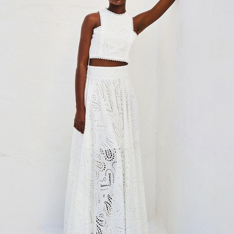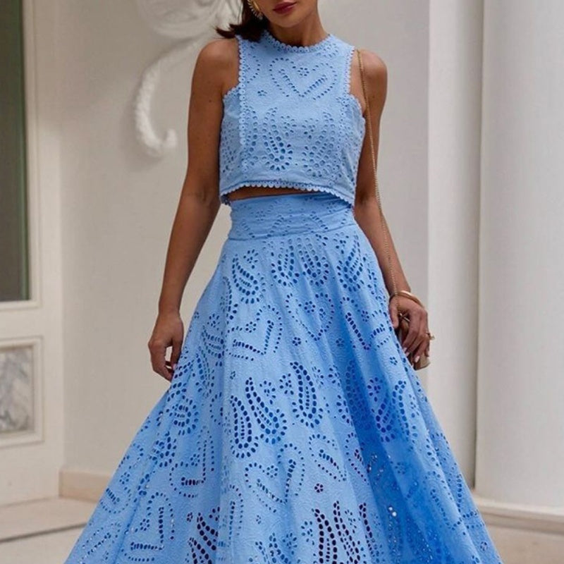 Ausgeschnittenes ärmelloses Oberteil und fließender Rock im 2-teiligen Set