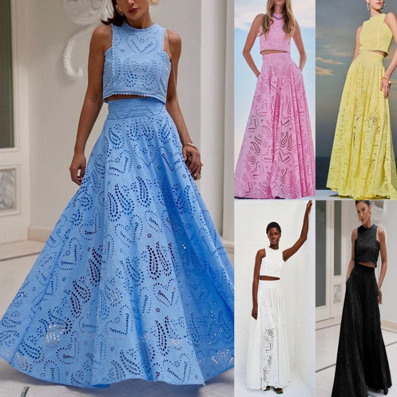Lieferumfang:1*Ausgeschnittenes ärmelloses Oberteil & Fließender Rock 2-Teiliges Set