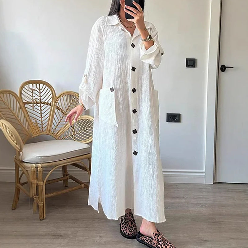 ZEITLOSE KNOPFVERSCHLUSS VORNE: Der klassische Knopfverschluss vorne verleiht diesem Freizeitkleid einen Hauch von Eleganz, macht es leicht zu tragen und perfekt zum Aufbrezeln.