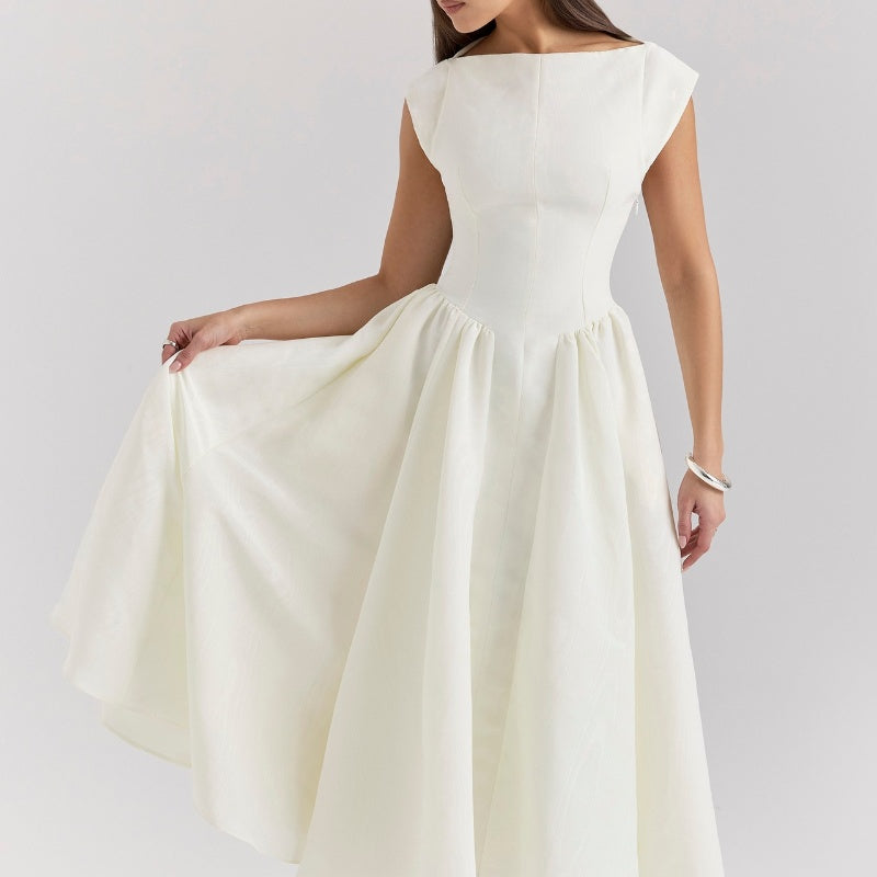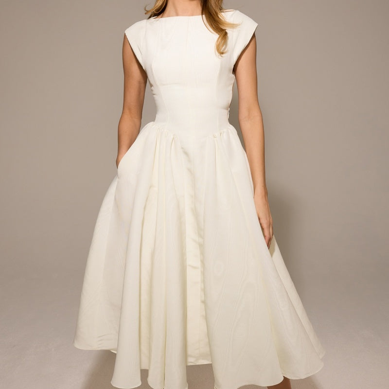 KAPPENÄRMEL FÜR ANMUTIGE BEDECKUNG: Mit seinen zarten Flügelärmeln bietet dieses Kleid ein perfektes Gleichgewicht zwischen Bedeckung und Stil und verleiht Ihnen einen Hauch von Raffinesse, während es gleichzeitig bequem bleibt.