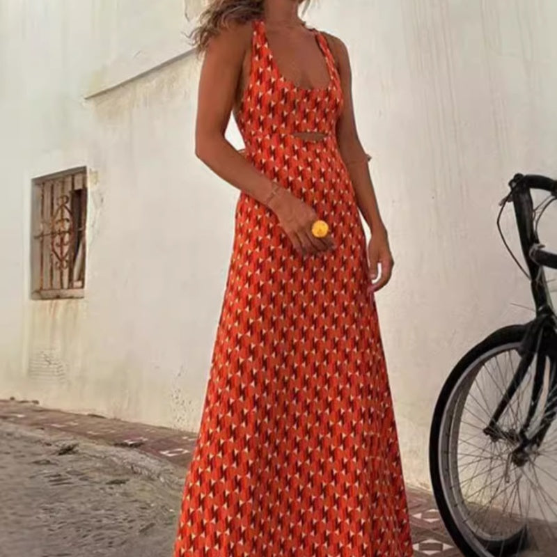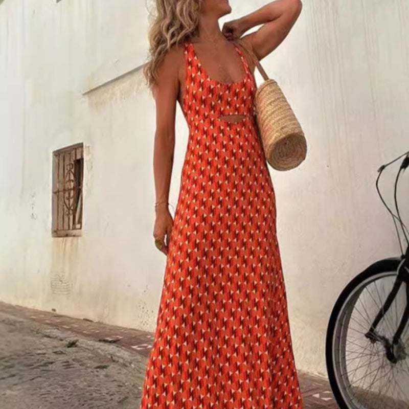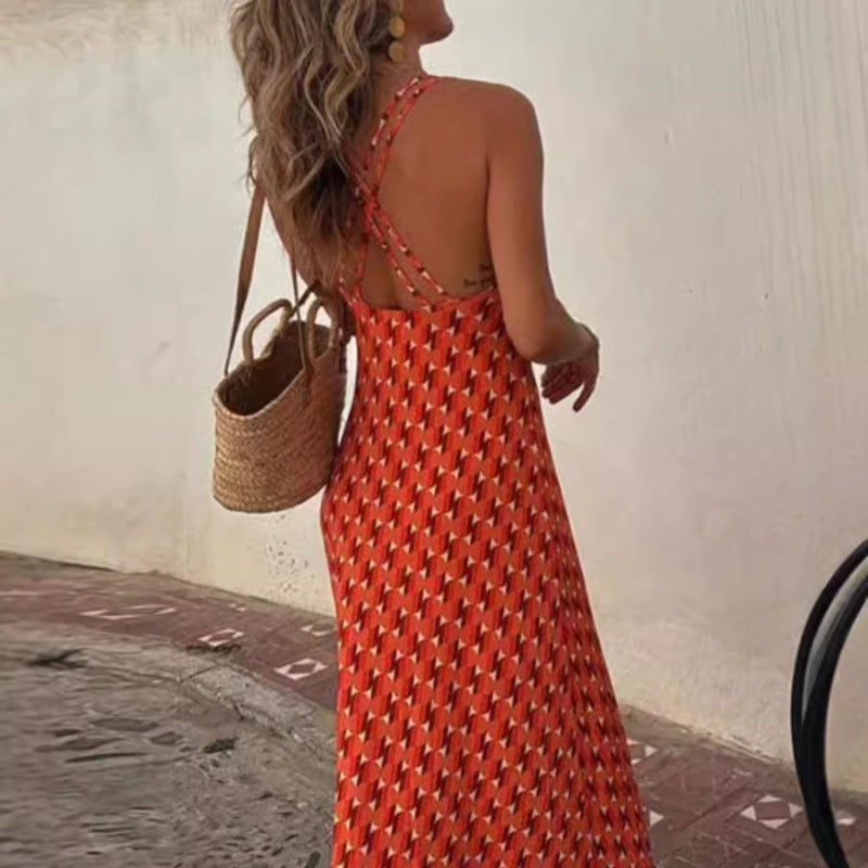 Elegantes ärmelloses Kreuzrücken-Kleid mit U-Ausschnitt