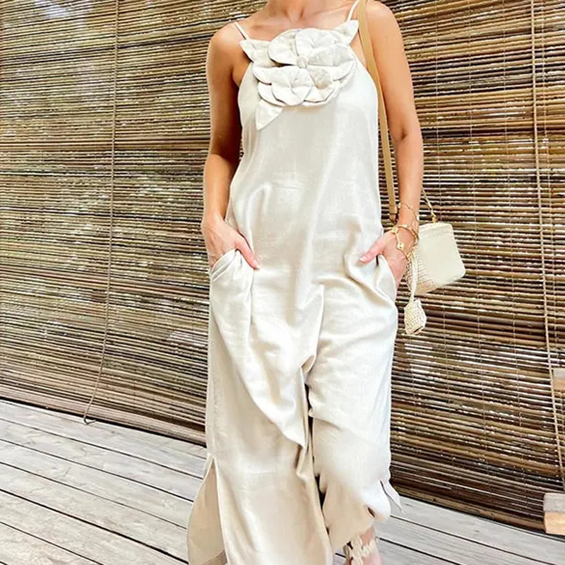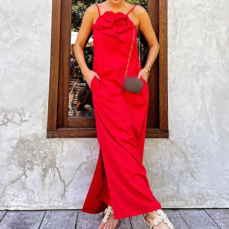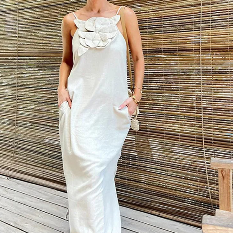 Elegantes Maxikleid mit Spaghettiträgern und floralem Akzent für Damen