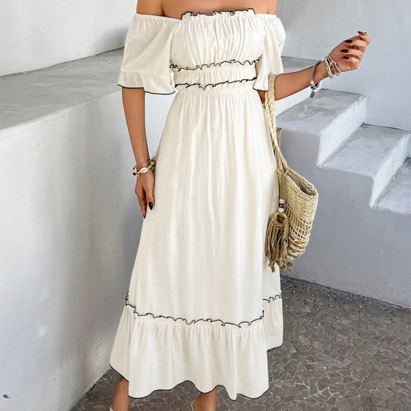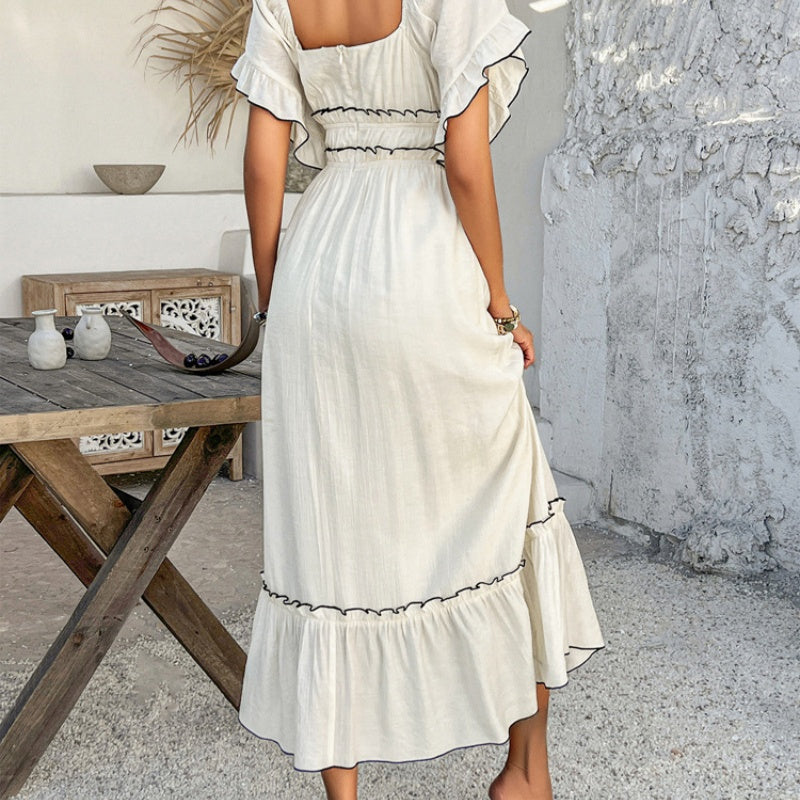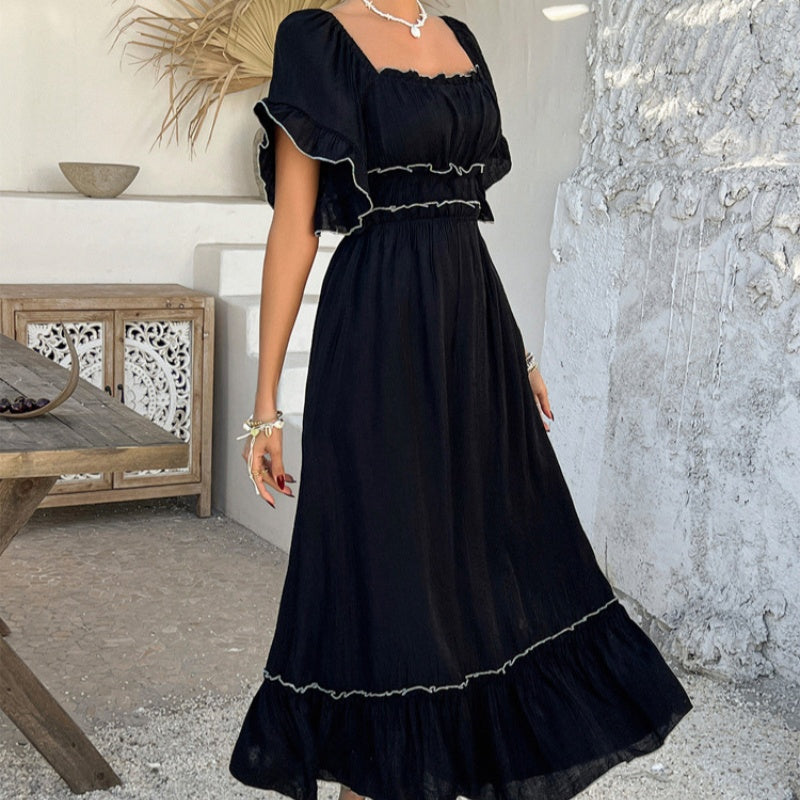 Lässige, bauschige Kleider für Damen mit kurzen Ärmeln und quadratischem Ausschnitt