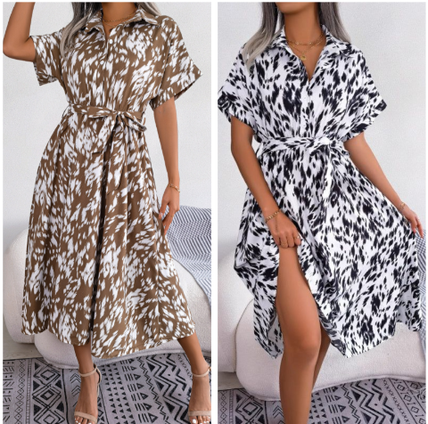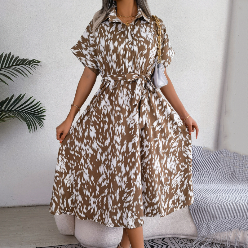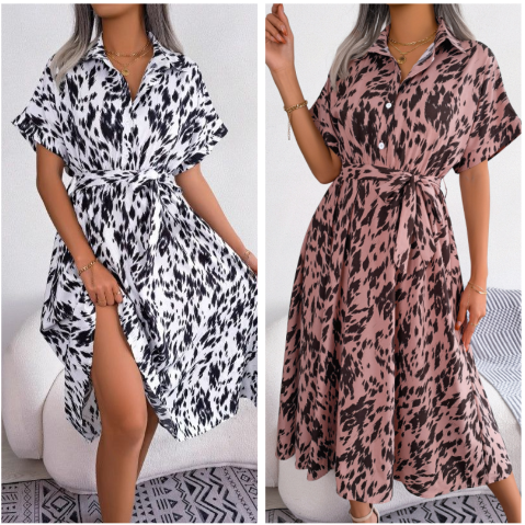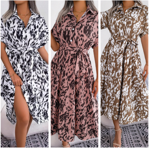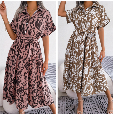 Paket beinhaltet: 1 * Damen Leopard V-Ausschnitt Revers Langes Hemdkleid