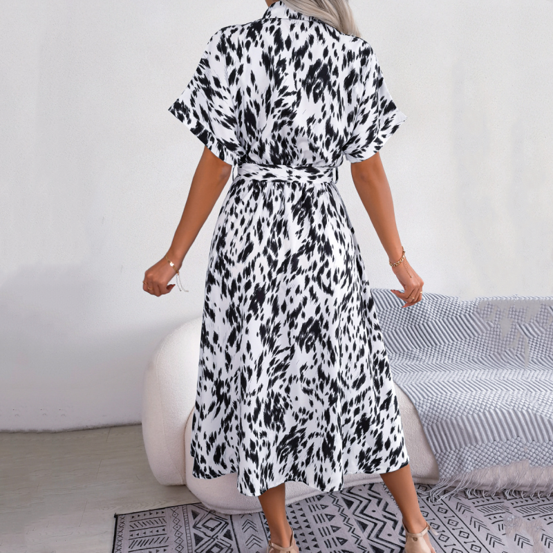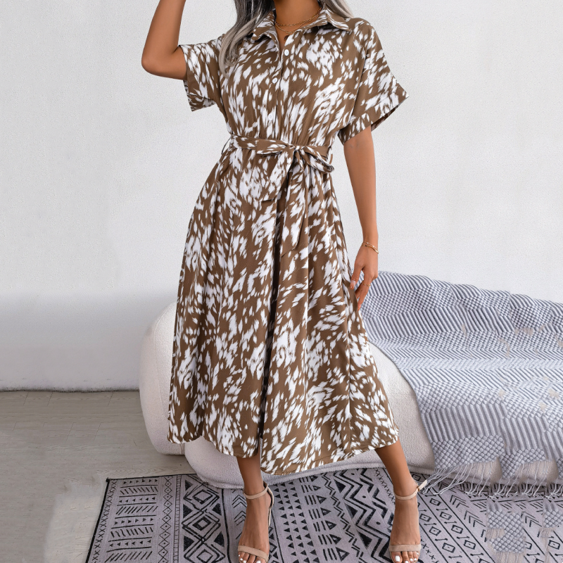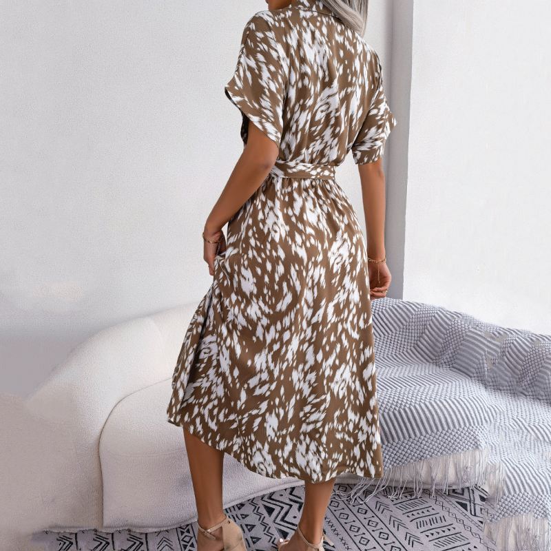 Langes Hemdkleid mit Leopardenmuster und V-Ausschnitt und Revers für Damen