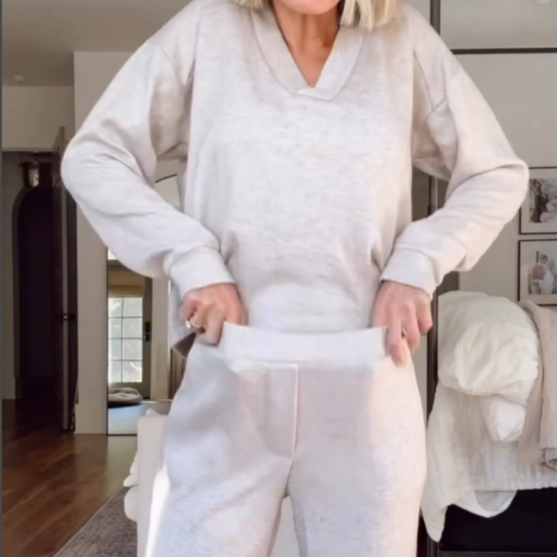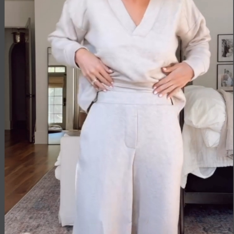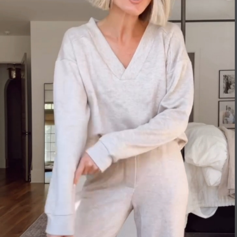 🔥HEISSER VERKAUF🔥 Lässiger Anzug mit Oberteil mit V-Ausschnitt und Hose mit weitem Bein