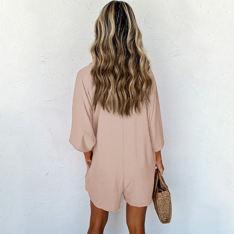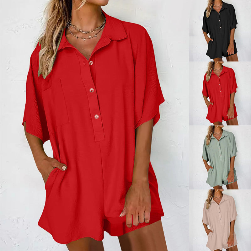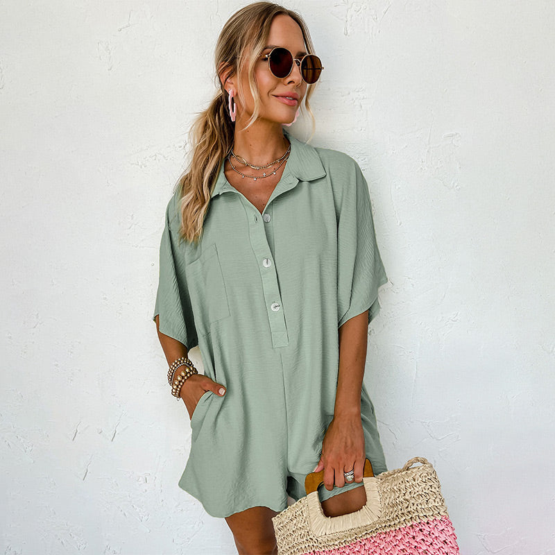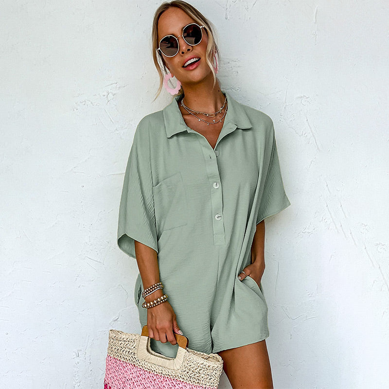 Paket beinhaltet: 1 * Damen Button-Down-Strampler mit Taschen