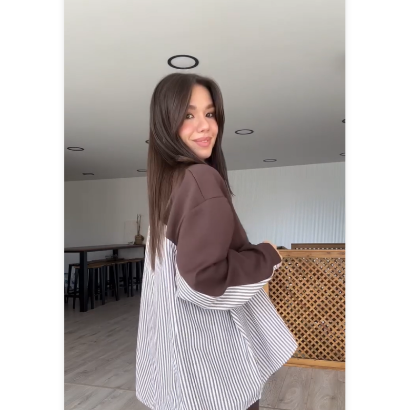 FASHIONABLE: Das trendige Patchwork-Design sorgt für einen einzigartigen Stil, der auffällt und das Outfit zu einem Must-Have für jede moderne Garderobe macht.