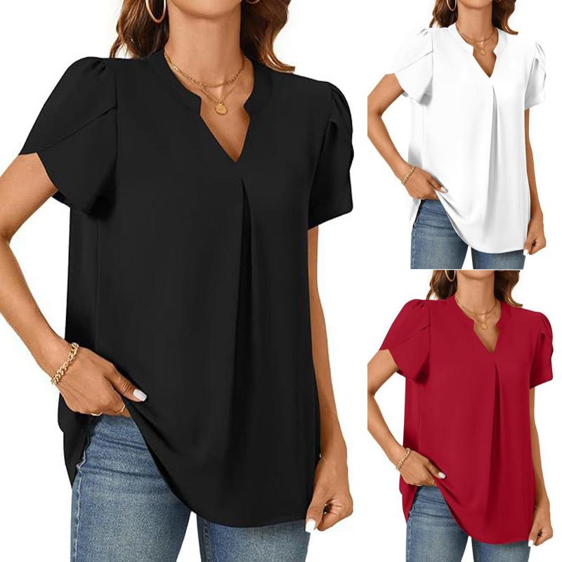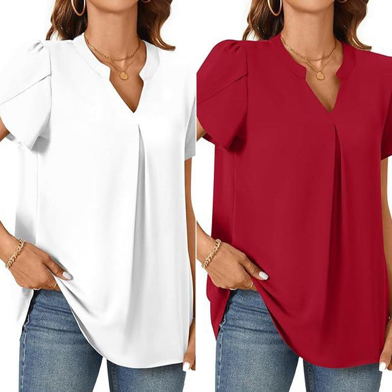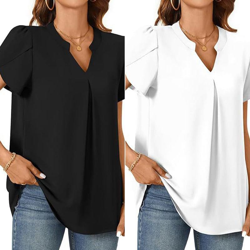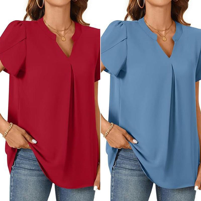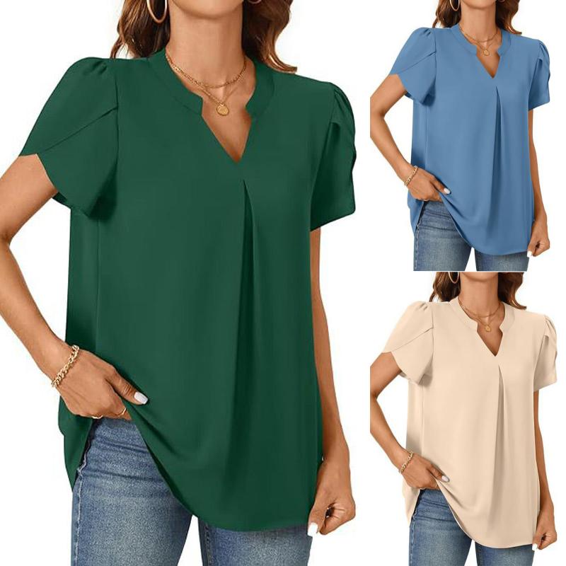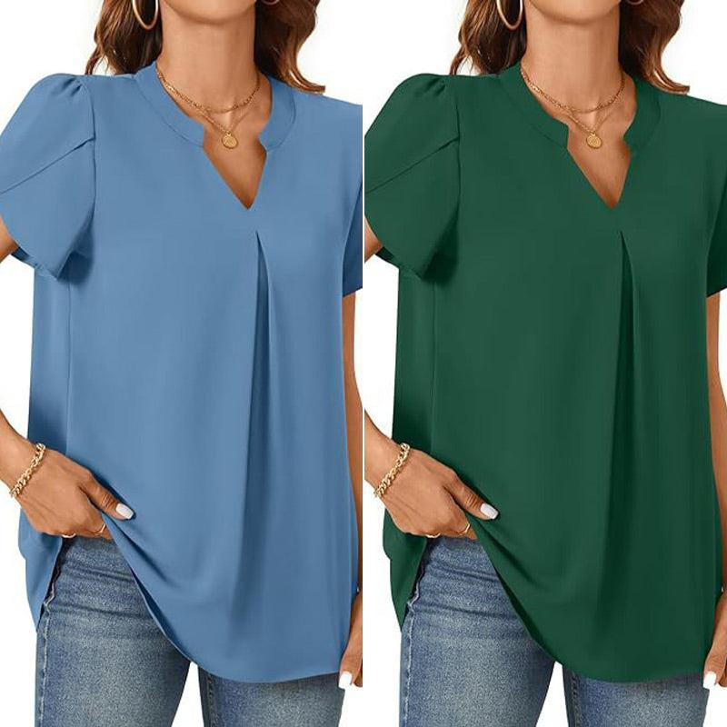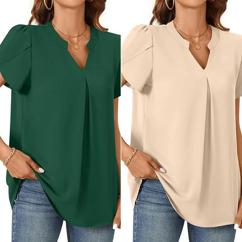 🔥2025 Heißer Verkauf💖Einfarbiges Kurzarm-Top mit V-Ausschnitt für Damen