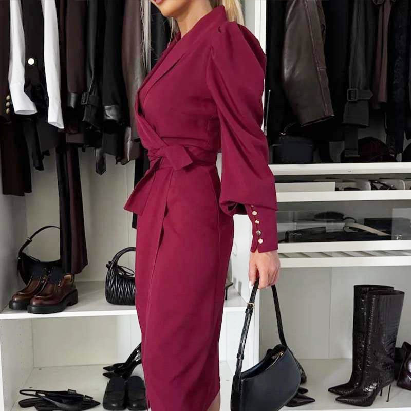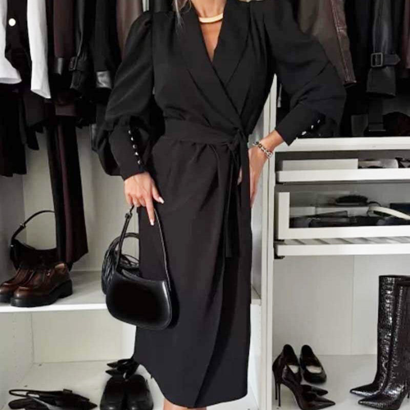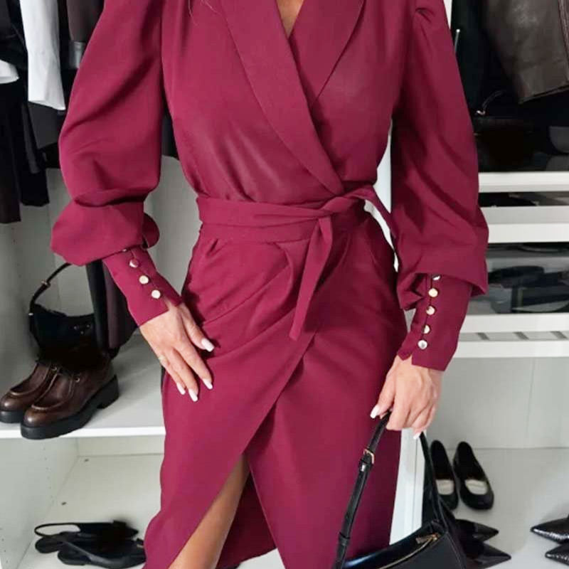🍁Neues Produkt 49%Rabatt💃Langarm der Frauen mit V-Neck-Krawatte Taille geteiltes Kleid