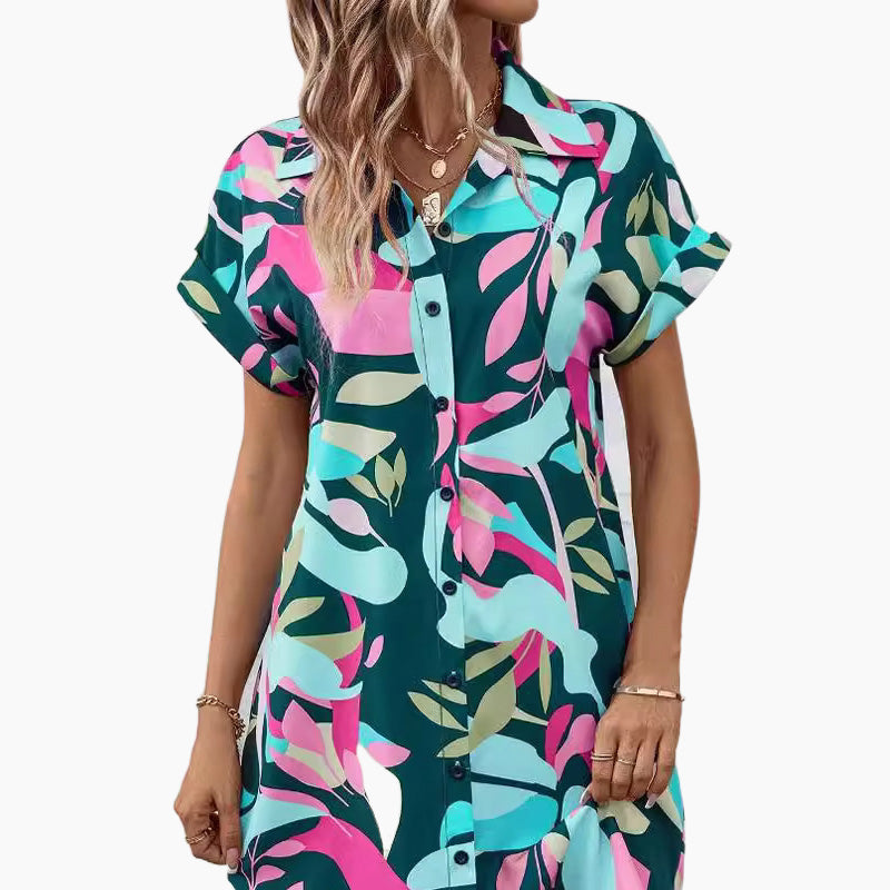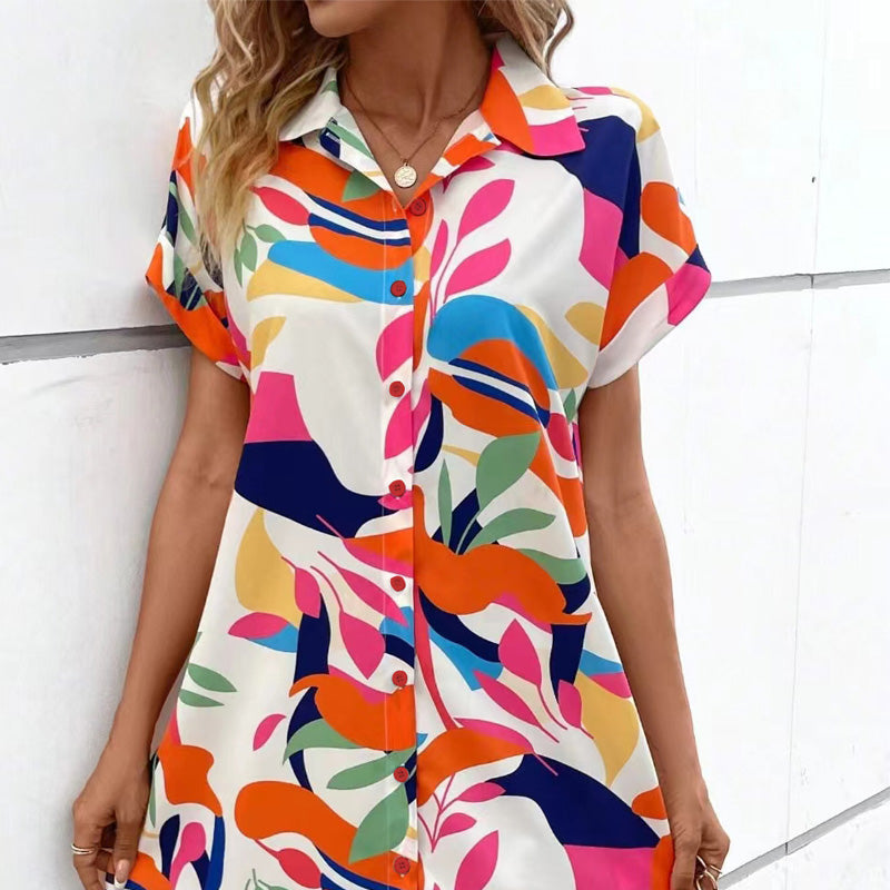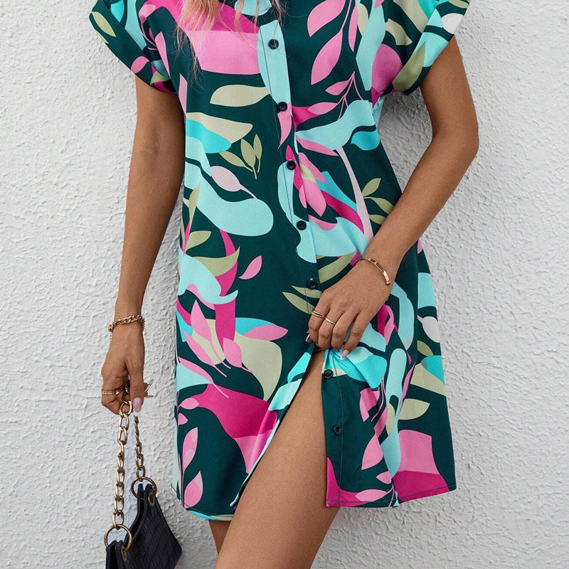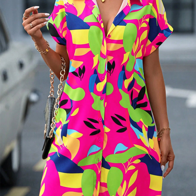 ✨ Damenmode Blumendruck Kurzarm Shirt Kleid