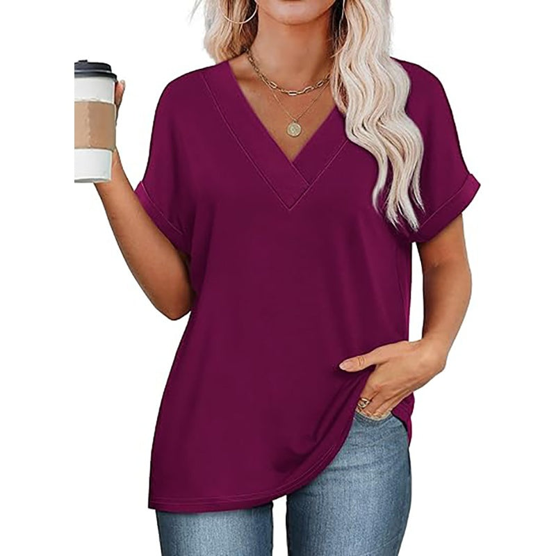 1* Damen V-Ausschnitt Dolman-Ärmel Kurzarm-Top