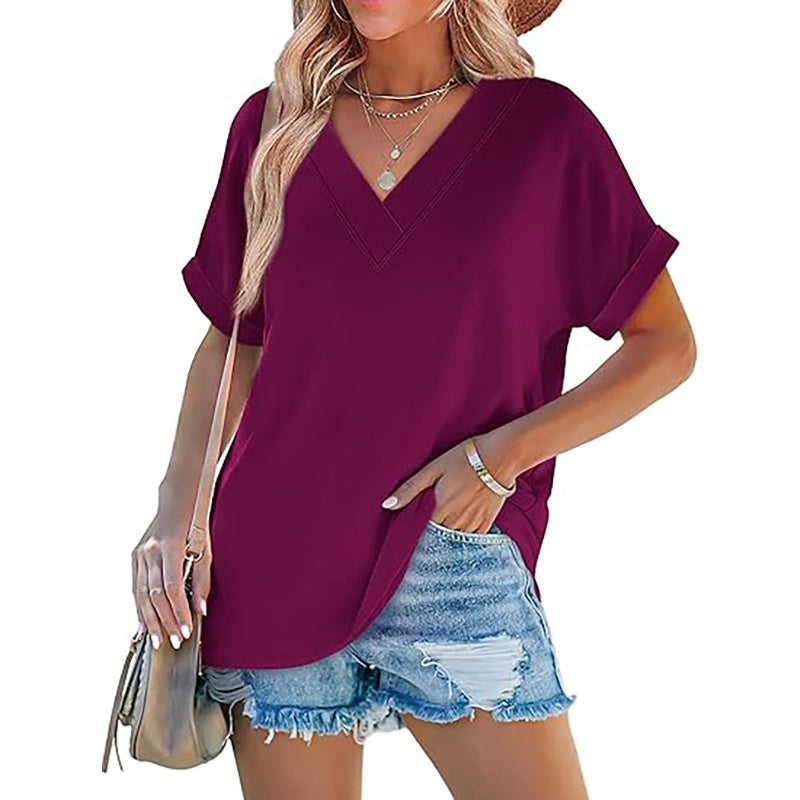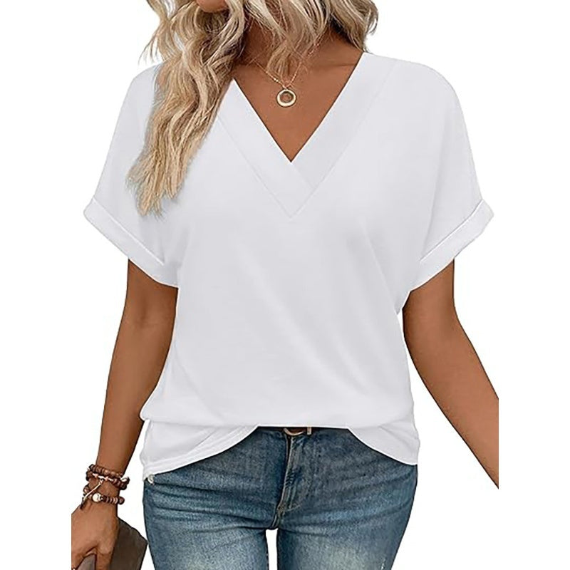 Kurzärmeliges Damen-Top mit V-Ausschnitt und Dolman-Ärmeln