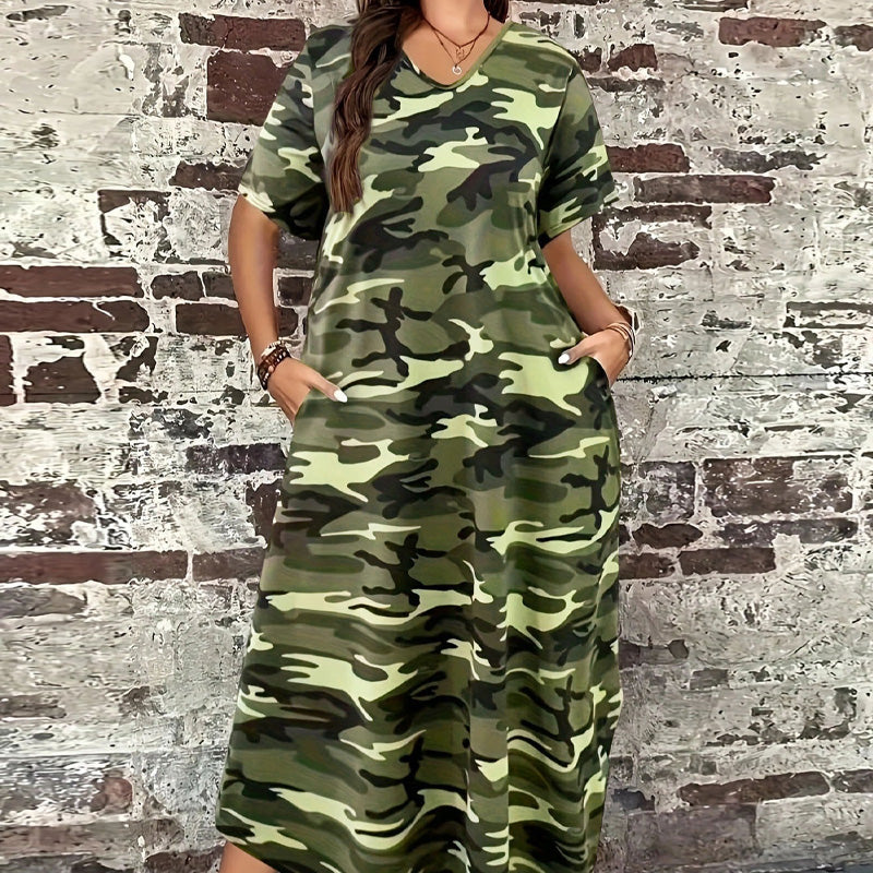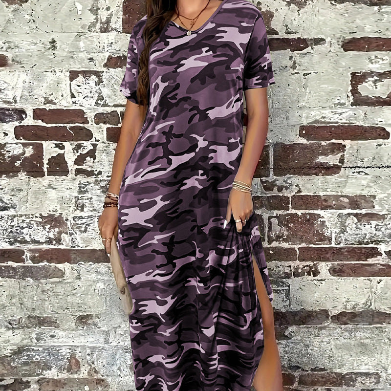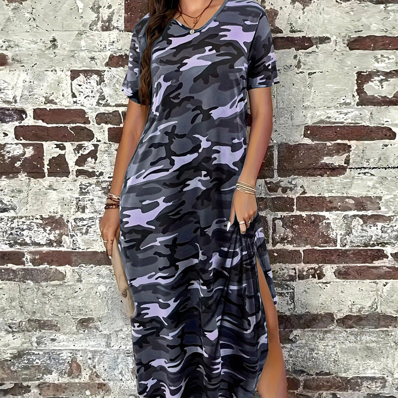 T-Shirt-Maxikleid mit Camouflage-Druck für Frauen