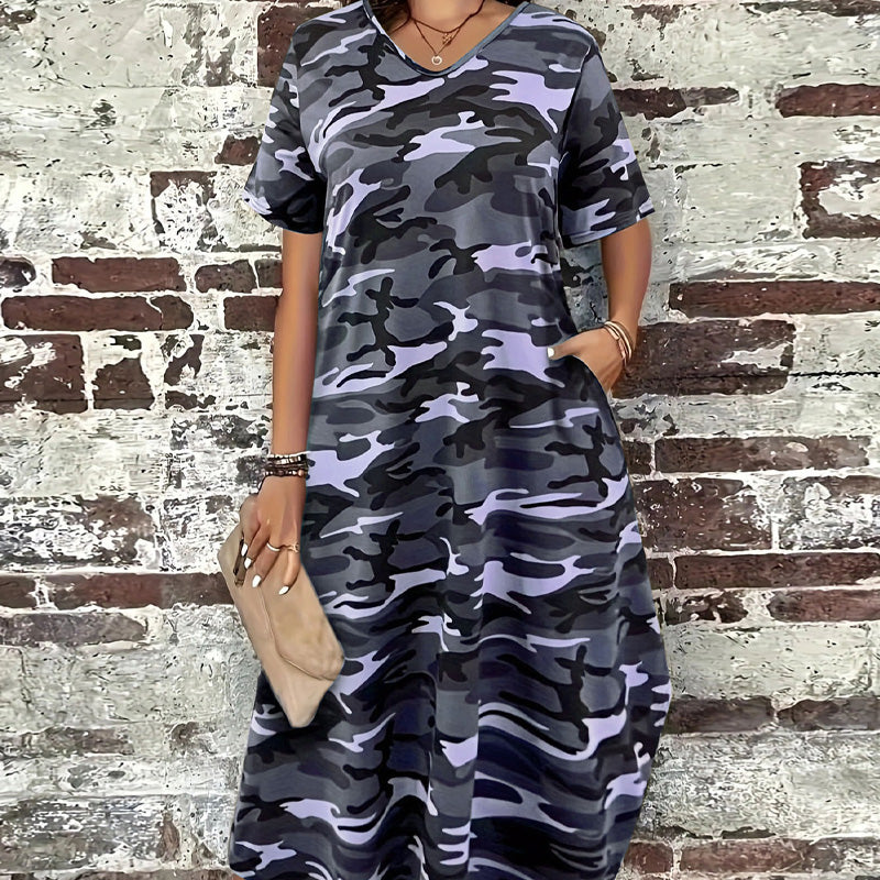 LÄSSIGES UND STYLISCHES DESIGN- Der auffällige Camouflage-Print verleiht diesem klassischen T-Shirt-Maxikleid einen einzigartigen und trendigen Look für lässige Ausflüge, Strandtouren oder Abendveranstaltungen.