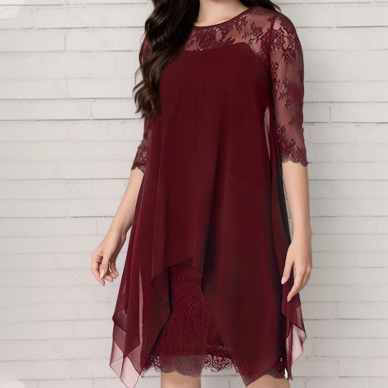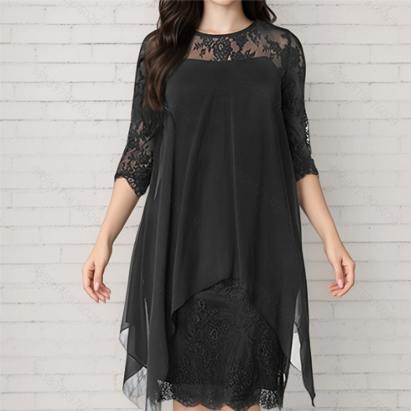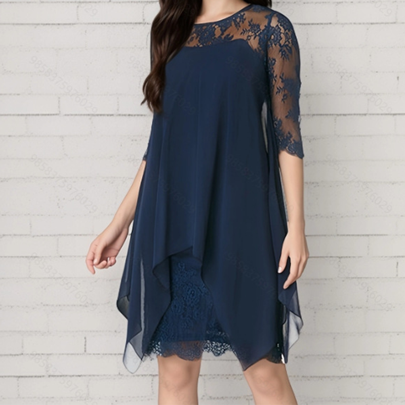 đDamen elegantes Kleid mit SpitzenĂŒberzug und asymmetrischem Saum
