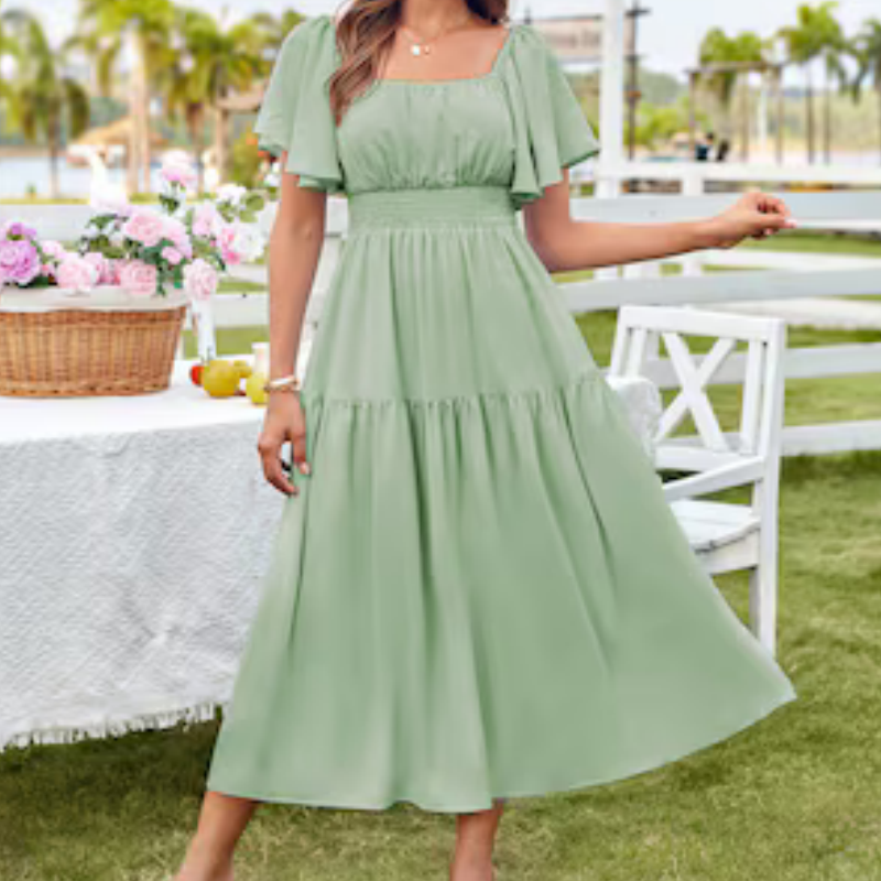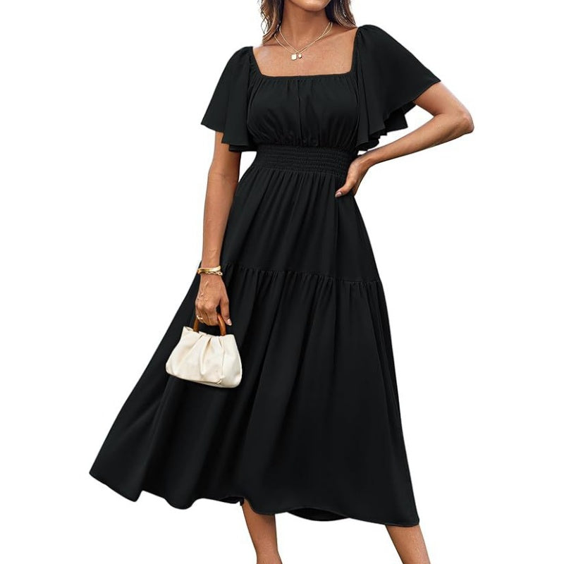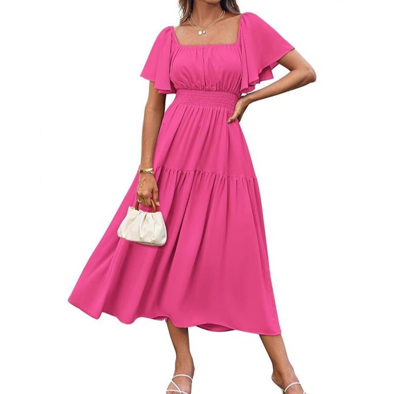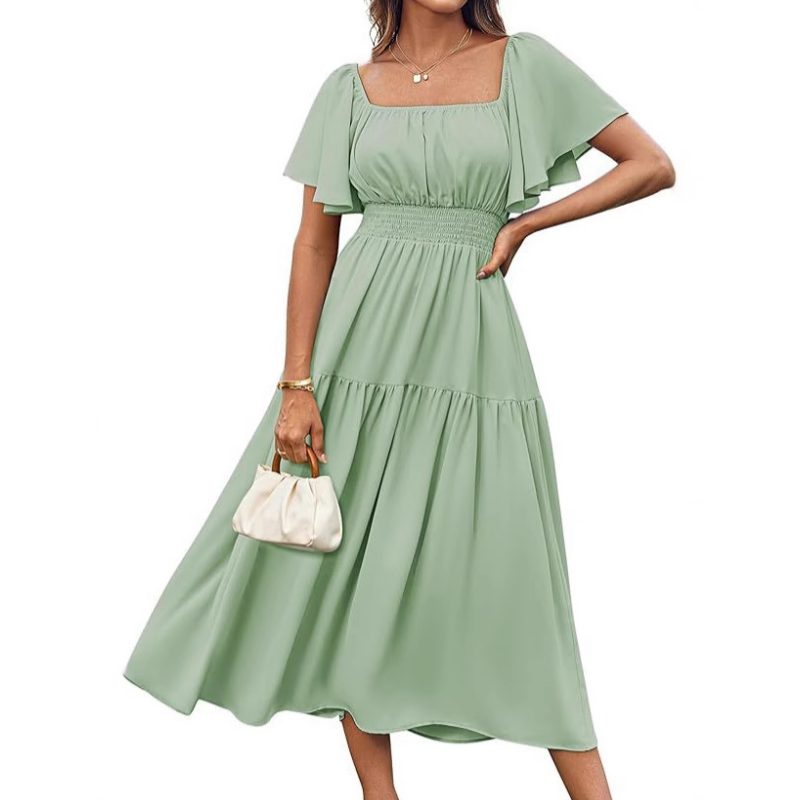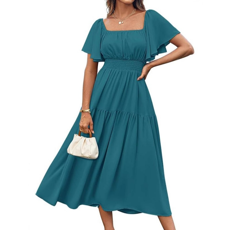 Paket beinhaltet: 1 *Elegantes Damen Square Neck Flowy Kleid