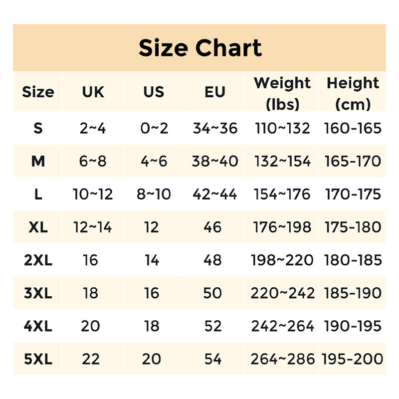 Überprüfen Sie die Größentabelle vor der Bestellung