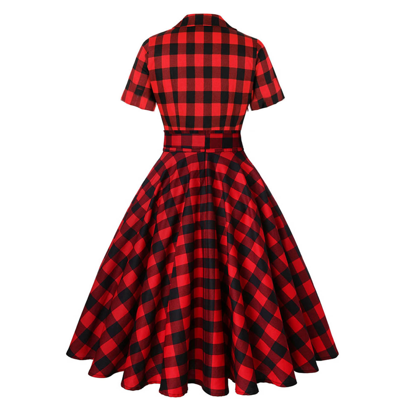 ELEGANTES DESIGN: Dieses Kleid besticht durch eine feminine Silhouette mit klassischem Hemdkragen und schmeichelndem V-Ausschnitt. Die taillierte Passform und der Tellerrock betonen Ihre weibliche Ausstrahlung auf stilvolle Weise.
