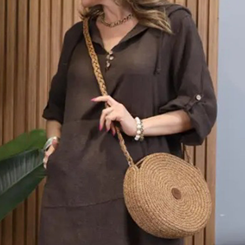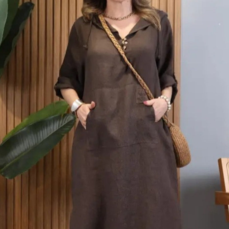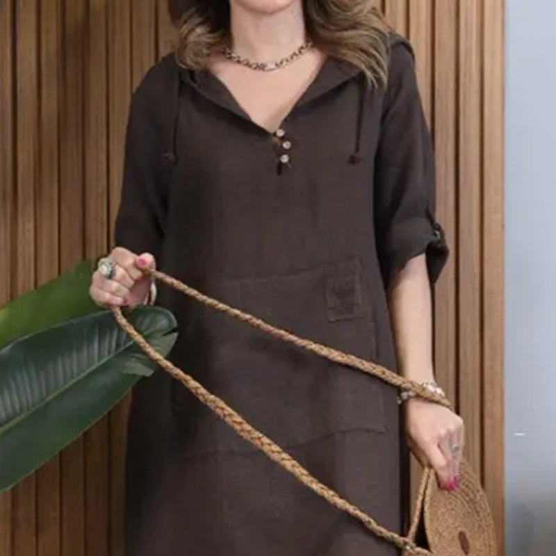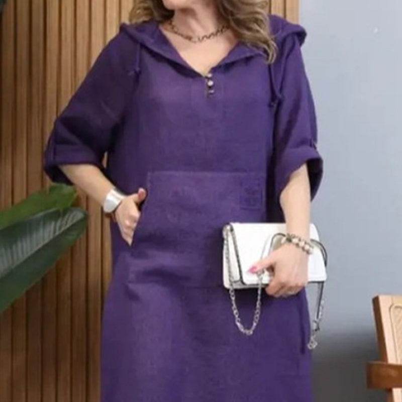 VIELSEITIGES DESIGN MIT KAPUZE: Dieses Kleid hat eine stylische Kapuze mit verstellbarem Kordelzug und einen schmeichelnden V-Ausschnitt - die perfekte Kombination aus lässigem Komfort und modernem Stil.