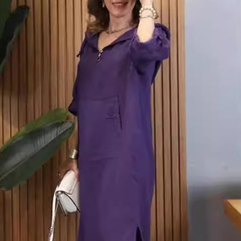 Lieferumfang: 1 × Langes Damenkleid mit langen Ärmeln, Schlitz und Kapuze