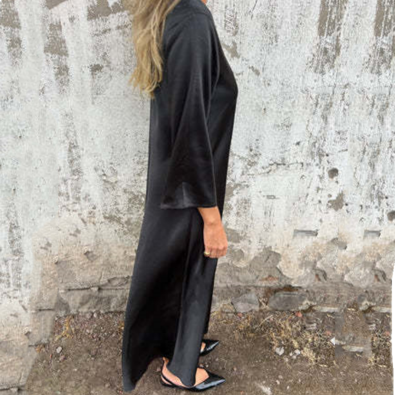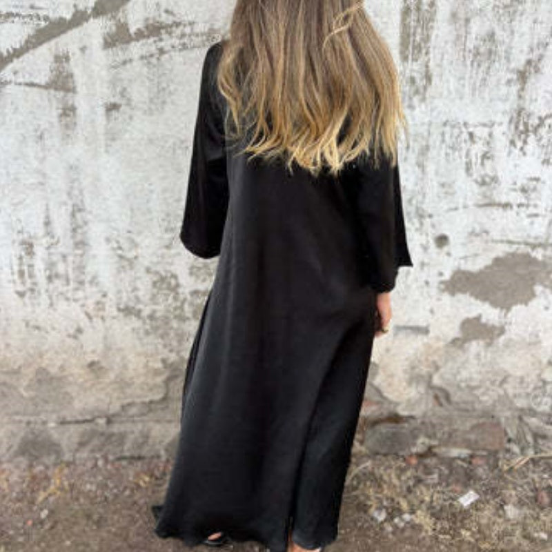 Atmungsaktives Baumwoll-Leinen-Gemisch:Dieses Kleid aus weichem und atmungsaktivem Baumwoll-Leinen-Gewebe hält Sie kühl und bequem, während es ein entspanntes und anspruchsvolles Gefühl vermittelt.