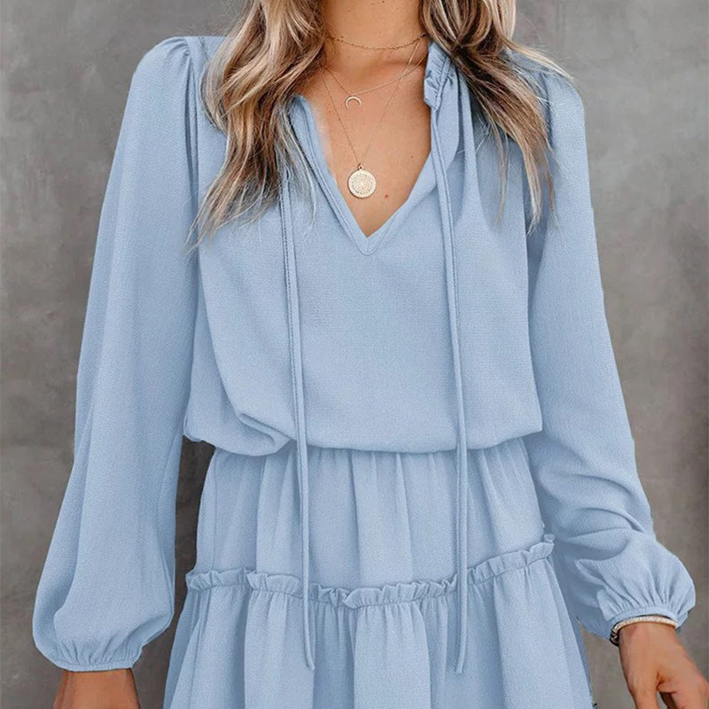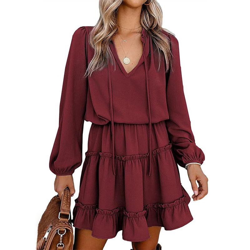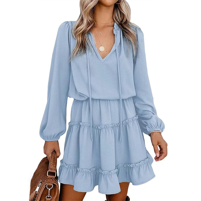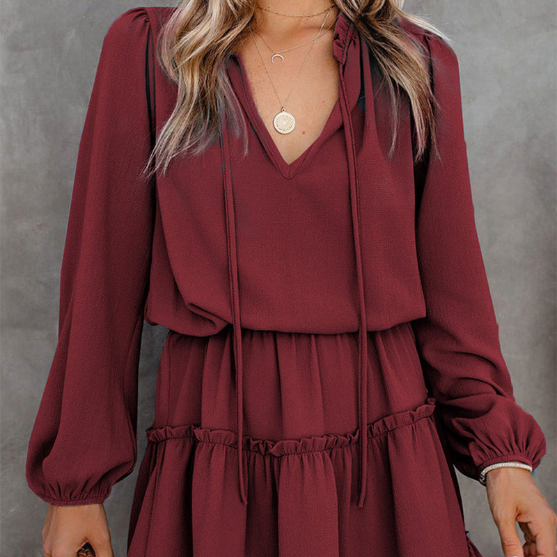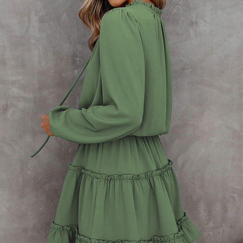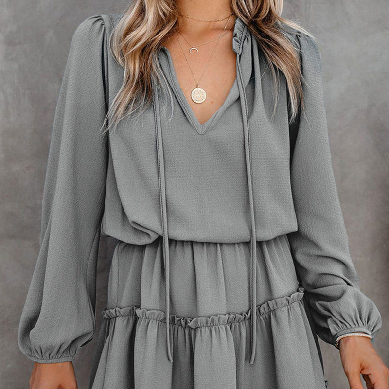 Paket beinhaltet: 1 * Damenkleid mit V-Ausschnitt und Rüschenbesatz