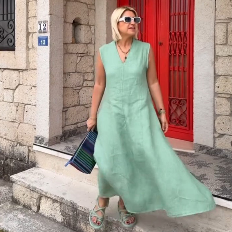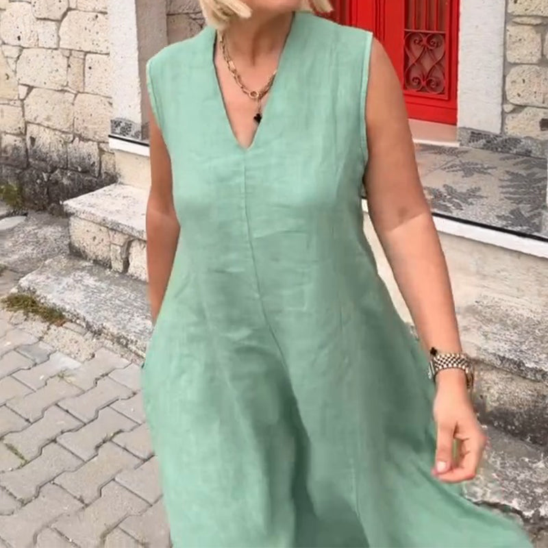 Ärmelloses Midikleid mit V-Ausschnitt für Damen