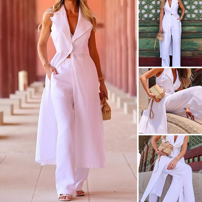 Ärmelloses Oberteil und Hose mit V-Ausschnitt für Damen