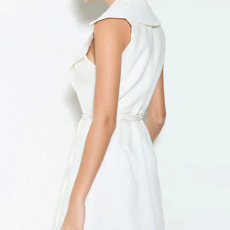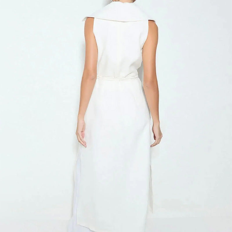 ÄRMELLOSES TOP MIT V-AUSSCHNITT – Das ärmellose Top besticht durch seinen schlichten V-Ausschnitt und sorgt für einen eleganten Look. Seine Länge sorgt für anmutige vertikale Linien und optische Ausgewogenheit und macht es zu einem Hingucker, egal ob allein oder im Set getragen.