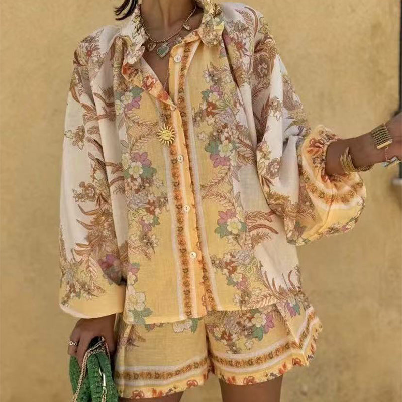 Lieferumfang: 1 x zweiteiliges Damen-Set mit Vintage-Blumendruck-Oberteil und Shorts.