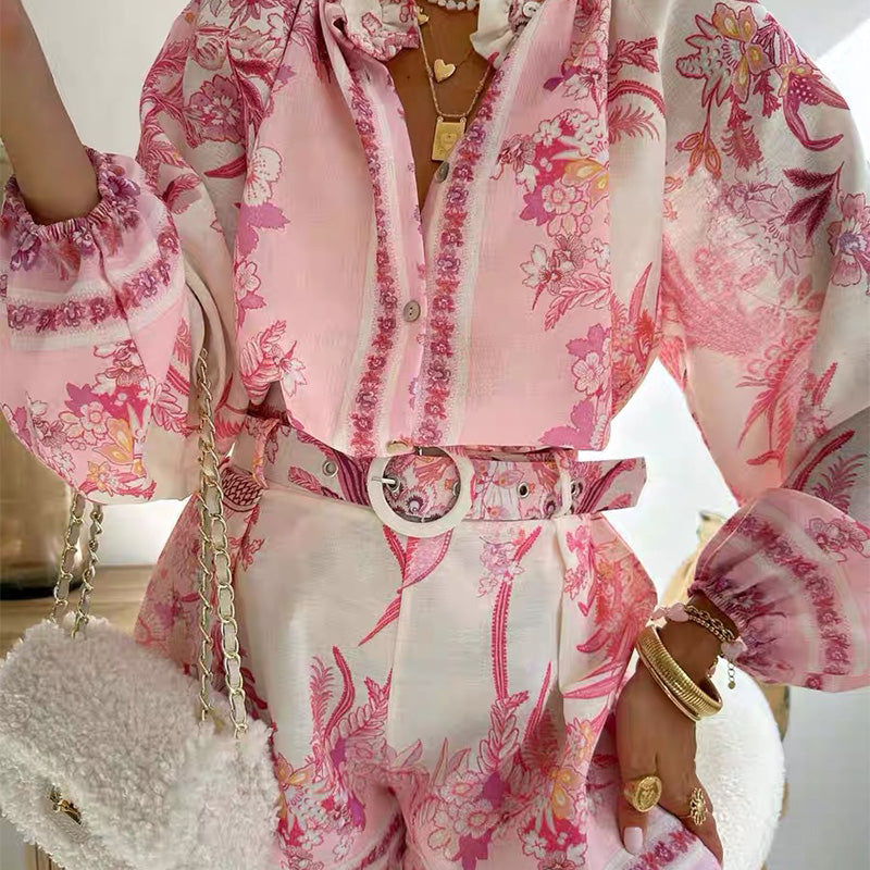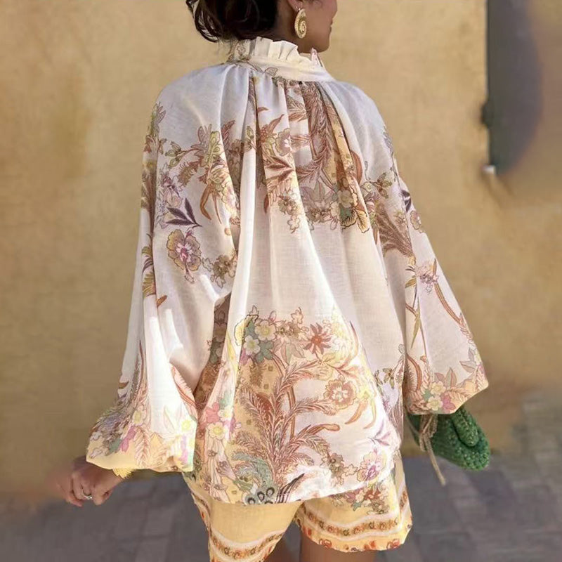 Vintage-Blumenmuster – Dieses zweiteilige Set besticht durch einen wunderschönen Vintage-Blumendruck, der Charme und Eleganz ausstrahlt. Perfekt für Frauen, die klassische Stile schätzen, verleiht es Ihrer Garderobe mühelos einen Hauch von Weiblichkeit.