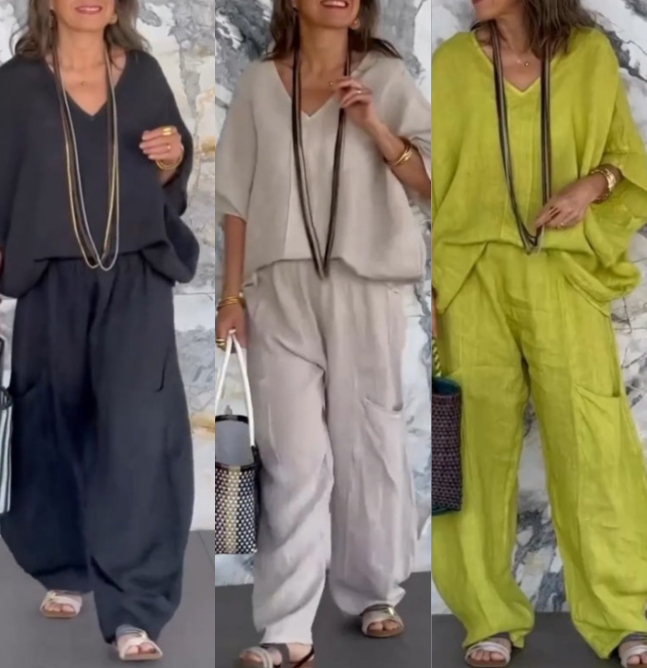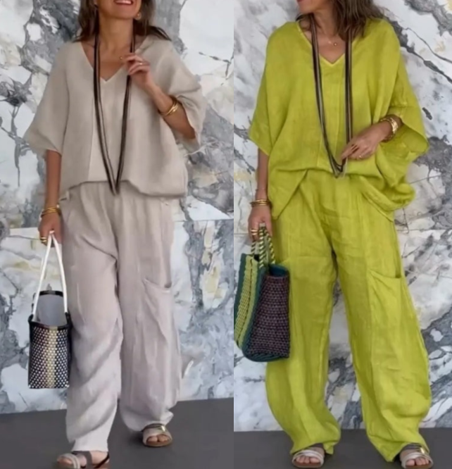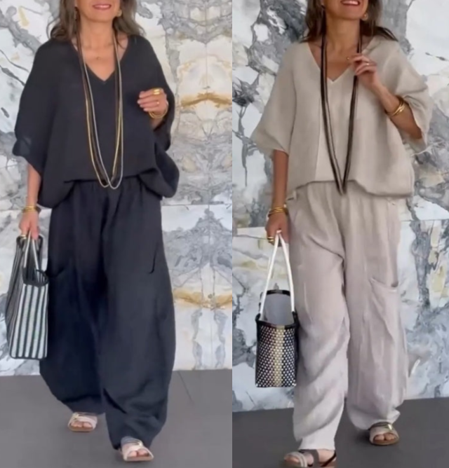 2-teiliges Baumwoll-Leinen-Set für Damen💓